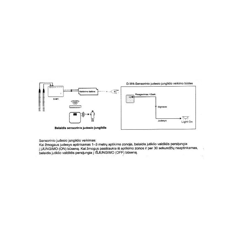 - Veikimo principas: nuo judesio 3m atstumu